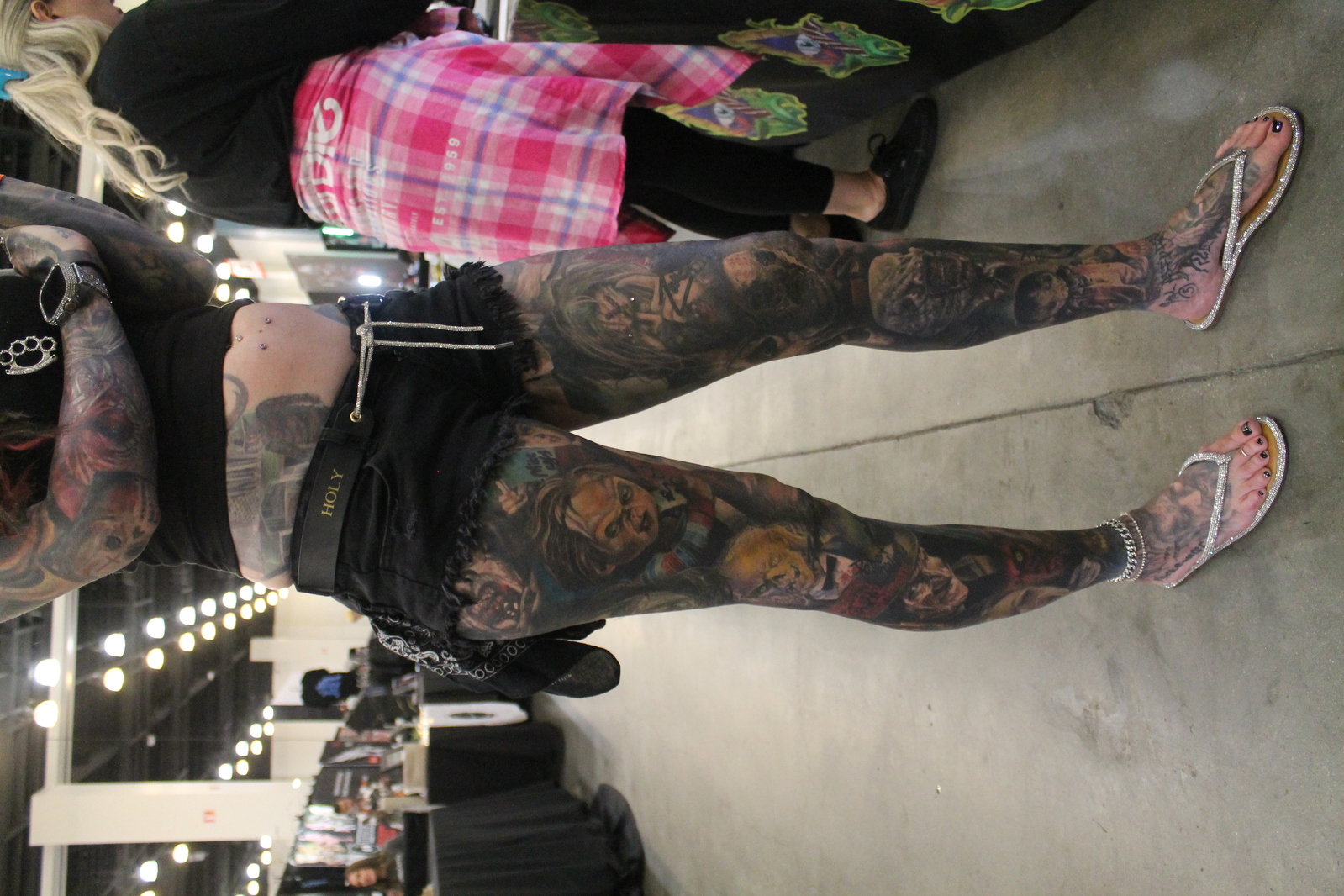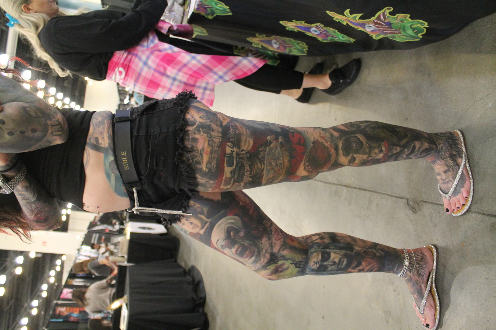 Photo 1347: Some nicely done horror-themed leg sleeves | Photo 1348: Some nicely done horror-themed leg sleeves | Photo 1349: One more view of the leg sleeves | Photo 1350: Budoir photography is not necessarily tattoo-related, but it can be |