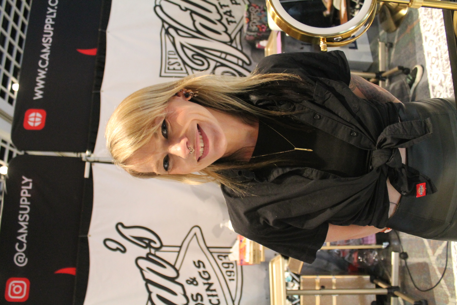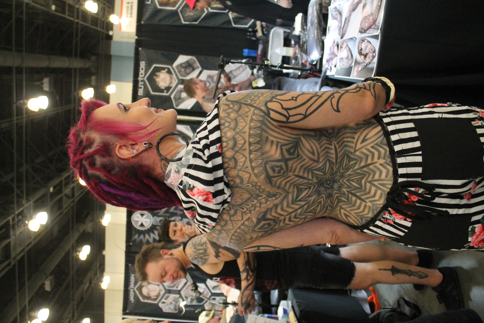 Photo 1355: Some nice black geometric tattooing | Photo 1356: Nothing better than a pretty girl with a septum piercing | Photo 1357: I ran into Kari Barba there and we talked about being the "tribal elders" | Photo 1358: No cool banner |